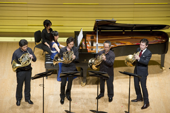 アンコール1曲目はN響ホルンセクションと同じくN響打楽器奏者の竹島悟史氏による《ずいずいずっころばし》。最後は福川氏&三浦氏でラフマニノフのチェロソナタ第3楽章を演奏した