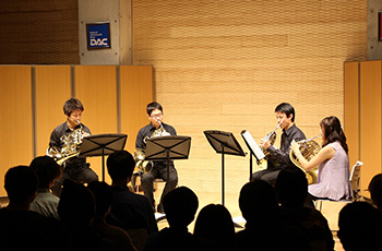 カルテット・ホーネッツは山岸リオ、日橋辰朗(以上、読売日本交響楽団)、豊田実加、熊井優(以上、神奈川フィルハーモニー管弦楽団)から成るホルン四重奏団で、2016年に結成され、翌2017年に第1回の演奏会を行なった。「ホルンの音がもっとも魅力的に響く四重奏をすることで、ホルンのサウンドをよりよくしていきたい」と山岸氏が日橋氏と話し、神奈川フィルの2人がそれに賛同した。2つのオーケストラのメンバーになったのはあくまで結果で、「音や音楽に対する価値観を共有できるメンバー」を集めたのだそうだ。