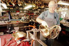 楽器の製造プロセスの中で絶えず行われている品質管理は、すべての管における物理的・寸法的な正確さを保証します。マイスター自身が製品に最適な材料を選び出し、製造の過程毎にその結果を検査しています。完成に至るまでそれぞれの管は幾度となく手で加工され、徐々に最高クラスの楽器へと仕上げられて行きます。アレキサンダー社の工房をあとにしたアレキサンダーホルンは、絶え間ない厳格な品質管理を通して正確な音程、敏速でバランスの取れた反応、そして最高の品質と三重に保証されています。