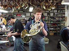 アレキサンダーホルンは標準的な調律をした後に出荷されており、ベルの中にごく普通に手を入れた状態でA=443Hzを示します。ご希望によってはそれ以外のピッチに設定することも可能です。最高のピッチはアレキサンダーホルン専用マウスピース装着時に保証されます。主管抜差管並びにすべてのバルブの抜差管は理論上の値よりもわずかに短く作られており、そのために通常の場合には、これらは少し抜かれることによって完全なチューニングになります。ほとんどのモデルで1番バルブは1音、2番は半音、3番は1音半音程が低くなるように作られています。