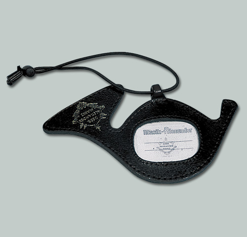 ホルンの形をしたアドレスラベルです。アレキサンダーロゴ入り!